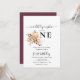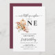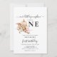 Una hermosa acuarela florida con ilustraciones de calabaza diseño invitación para el primer cumpleaños. El texto y los colores se pueden personalizar.