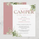 Invitación Pequeño campista Dusty Rose Greenery Baby Shower