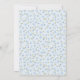 Un pequeño conejito está en camino... un lindo bebé sprinkle invitación con una suave paleta de color azul. El diseño se compone de un pequeño conejito dulce con un pequeño ramo y un globo azul que enarbolan una pancarta con rocillo de bebé y decorada con un pájaro. La parte trasera de la invitación tiene un patrón floral de colorido y caprichoso. Perfecto para una ducha de bebé con tema primaveral, de verano, de Pascua o de conejo.