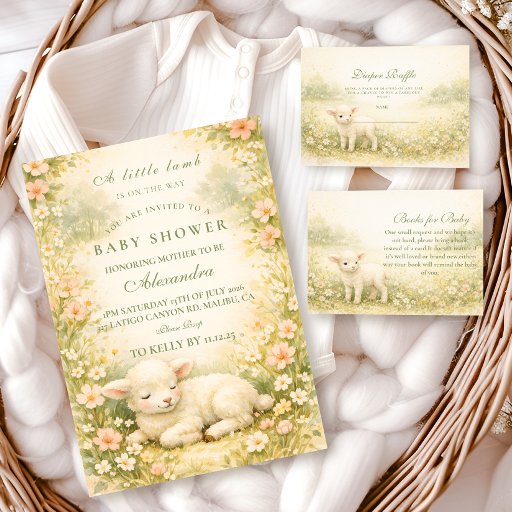 Invitación Pequeño Cordero Flor Silvestre Marco Baby Shower