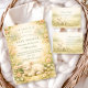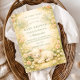 Un diseño atemporal inspirado en reliquias familiares que presenta un cordero dormido en paz enmarcado dentro de una delicada guirnalda ovalada de suaves flores de prado. Minúsculas flores de marfil y sonrojo con follaje aéreo crean un borde botánico romántico contra un fondo cálido de pergamino. La suave sombra y el ambiente de antiguo libro de cuentos dan a este diseño una presencia refinada y elegante, perfecto para una celebración clásica, neutral o de primavera. Suave, sentimental y sin esfuerzo elegante.
