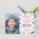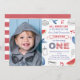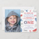 invitaciones de primer cumpleaños de "pequeno petardo" con un esquema de colores de estrellas y rayas.