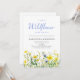 Pequeña invitación a la ducha de bebé neutra de género con flores silvestres. Es fácil cambiar el texto. Bonito acuarela amarillo floral para niño o chica.