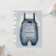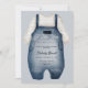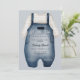 Invitación de Baby Shower de Cute Little Man con una pintura acuarela de un traje de bebé, escritura caprichosa y plantilla de texto de personalizable completo. Patrón rayado en el respaldo en tonos azules.