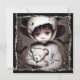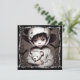 Espantosas invitaciones a fiestas de Halloween. Pequeño y espeluznante fantasma étnico con grandes ojos atemorizantes sosteniendo muñecas súper aterradoras.