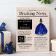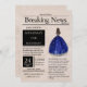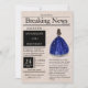 Hermoso periódico estilo vintage, "Últimas Noticias", edición especial con plantillas personalizables con una niña en vestido formal. Su hermoso vestido de acuarela es de color azul marino con acentos de brillo falso.