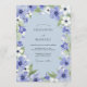 Delicate periwinkle and white blooms with lush green foliage artfully border this design. The artistic watercolor style evokes a dreamy, ethereal atmosphere, perfect for a romantic celebration.