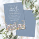 Muted Pastel Boho Botanical Garden Bridal Shower Invitation. Celebrate the bride-to-be with this elegant boho design featuring a periwinkle blue or dusty blue background on both sides for a soft, calming, and timeless look, perfect for gatherings from spring through autumn. The top of the invitation features the phrase “Love is in Bloom,” which can be customized to suit your theme or removed for a simpler, more minimal style.