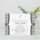 Invitación Perla Cruz Rosa Negro Damasco Cristal