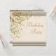 Invitación de cumpleaños con elegantes remolinos de beige marfil y dorado. Esta bonita invitación de cumpleaños con perlas marfil y doradas funciona bien para una fiesta de cumpleaños de sweet sixteen, invitación de Quinceañera, la invitación de cumpleaños marfil y dorado para mujer de cualquier edad se personaliza fácilmente para su evento agregando los detalles del evento, estilo de letra, tamaño y color de la letra, y redacción. Tenga en cuenta que todos los diseños de tarjetas e invitaciones que encontrará en Zazzle son gráficos impresos sin joyas reales, lazos, partes o piezas en relieve, estampadas o agregadas.