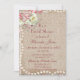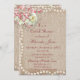 Esta hermosa ducha azul con perlas de novia luce un fondo marrón vintage con una decoración rosa y perlas blancas alrededor de la frontera. En el centro está tu información de ducha de novia escrita con una bonita letra de color burdeos. Personaliza tu invitación a la ducha de novia hoy! Diseño de invitaciones: Bodas por Rhoadie Arte de fondo: Elena Chukovskaya