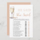 El "Juego de Perlas de Oro y Prosecco que dijo, She Said" es una deliciosa adición a tus festividades de ducha de novias. Con elegantes perlas de oro y motivos de prosecco, este juego añade un toque de sofisticación al evento. Los huéspedes podrán adivinar quién dijo qué mientras comparten anécdotas y recuerdos, haciendo para todos una experiencia divertida y memorable.