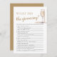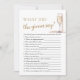 The Gold Pearls & Prosecco What Do The Groom Say Game es una forma deliciosa de entretener a los huéspedes en una ducha nupcial. Los participantes tratan de adivinar las respuestas que el novio dio a las preguntas sobre su novia, agregando un toque de risa y anticipación a la celebración. Se trata de una actividad encantadora que ofrece una visión de la relación de la pareja, manteniendo a todos comprometidos y entretenidos.