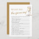 The Gold Pearls & Prosecco What Do The Groom Say Game es una forma deliciosa de entretener a los huéspedes en una ducha nupcial. Los participantes tratan de adivinar las respuestas que el novio dio a las preguntas sobre su novia, agregando un toque de risa y anticipación a la celebración. Se trata de una actividad encantadora que ofrece una visión de la relación de la pareja, manteniendo a todos comprometidos y entretenidos.