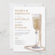 Una elegante moda celebra la invitación a la ducha de novias, con champán Prosecco a la acuarela y perlas. El tipo es una mezcla de escritura moderna y moderna y una fuente serif vintage clásica con champán y tipografía de color negro.