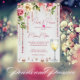 Perlas y prosecco ducha de novia elegante Plantilla editable Invitación descarga digital instantánea rosas rosas rosas rosas blusas y guirnaldas de perlas vaso de invitación de fiesta con tema de perlas de vino