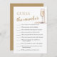 "Perlas y Prosecco Adivinen el juego de ducha nupcial" es una actividad encantadora e interactiva que agrega emoción a la celebración. Se invita a los huéspedes a adivinar el número correcto de objetos, como perlas o corchos de Prosecco, en un frasco o contenedor. El elegante toque de perlas y el animado encanto del Prosecco realzan el ambiente del juego. Las risas llenan la habitación mientras los clientes adivinan, creando un ambiente animado y acogedor para la ducha de novias. Es una forma deliciosa de entretener a los huéspedes y crear momentos memorables para la futura novia.