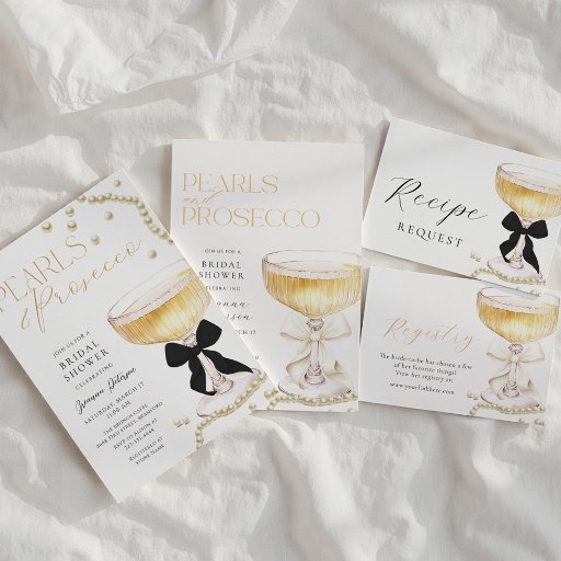 Invitación Perlas y Prosecco Black Bow Bridal Shower