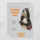 Invite a sus amigos y familia a su fiesta de Halloween con esta original carta minimalista con Birdie el Bernedoodle vestido con su traje de pirata rojo, negro y blanco. Algunas palabras están escritas en un tipo naranja aterrador y otras en gris oscuro. Envíe a amigos, familia y otros perdedores para que vengan fiestas contigo por Halloween. Puede cambiar la hora, la fecha, el número RSVP, la dirección y el nombre.