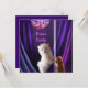 Invitación Fiesta Disco Gato jengibre bailando y cachorro maltés blanco. Fondo púrpura con bola de espejos. Se puede utilizar para cualquier celebración o evento. Personaliza con tus propios detalles.
