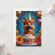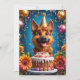Un perro alegre, vestido con un gorra fiesta, disfruta de una celebración de cumpleaños con una torta vibrante y decoraciones festivas, creando un ambiente alegre y festivo.