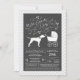 Incluya al hermano mayor o a la hermana bebé de piel en la celebración con este adorable diseño de ducha de perro Pointer! Perfecto para un amante con un bebé en camino. El Pointer está al lado de un adorable carro vintage. El fondo gris de la pizarra lo convierte en el lugar ideal para una ducha de matrimonio o una ducha de cama supletoria.