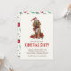 Capturar el encanto de la temporada de fiestas con esta invitación a los Navidades de perro ensangrentados, una adición caprichosa y reconfortante a sus celebraciones festivas. Esta carta encantadora cuenta con un perro con un Sombrero de Santa y está decorada con un guirnalda de poinsettia roja, frente a una escena de invierno nevada.