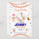 Presentando nuestra invitación personalizada a la fiesta de cumpleaños del béisbol - ¡la mejor manera de celebrar un día especial con un toque personal! Esta invitación personalizada está diseñada para el verdadero entusiasta del béisbol y garantiza que su celebración de cumpleaños sea un gran slam. En el corazón de la invitación está un ilustracion personalizado que presenta al honorario de cumpleaños, representado como una estrella en acción en el campo de béisbol. Imagina a tu ser querido balanceándote por las vallas o haciendo una captura increíble, todo contra el telón de fondo de un estadio iluminado por el sol. Este diseño único y a la medida garantiza que su invitación destaque y refleje la personalidad del invitado de honor. Acompañar la imagen dinámica es un texto cuidadosamente seleccionado que capta la emoción de un día en el estadio. En la invitación se proporcionan todos los detalles esenciales, incluido el nombre de la celebración del cumpleaños, la fecha, la hora y el lugar del fiesta. El juego de fuentes y el vibrante esquema de colores mejoran aún más el tema general, creando una invitación que no sólo informa sino que también genera anticipación para un evento memorable. Impreso con cartón premium, nuestra Invitación personal al partido de cumpleaños de béisbol exuda calidad y durabilidad. Cada invitación viene con un conjunto de sobres a juego, completando la apariencia cohesiva y pulida que prepara el escenario para una celebración inolvidable. Ya sea que esté lanzando un fiesta para un pequeño fanático o un ávido hincha del béisbol, nuestra Invitación Personal al partido de cumpleaños del béisbol agrega un toque personalizado que asegura que su evento sea verdaderamente único. Prepárate para un día de carreras en casa, risas y recuerdos apreciados con esta invitación personalizado que celebra al jugador estrella en tu vida!
