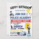 Personal Police Cop Party Birthday Invitation! Ideal for young police enthusiasts, this invitation showcases fun law enforcement-themed graphics like badges, sirens, and police cars. Fully customizable with your event details, it creates an exciting preview of a thrilling birthday celebration. Get ready for a memorable day filled with adventure as guests gather to celebrate your little cop in training! 🚓🎉👮♂️