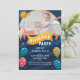 Invitaciones a la fiesta de cumpleaños del personalizable para niños con una imagen. Celebre el cumpleaños de su hijo con estilo con nuestra vibrante y colorida plantilla de invitación de cumpleaños para niños. Esta invitación es perfecta para la fiesta de cumpleaños de su hijo o cualquier celebración de fiesta infantil. El diseño cuenta con un divertido y alegre pastel de cumpleaños, globos y un regalo, todo en un entorno fiesta divertido y emocionante. Nuestra plantilla de invitación de cumpleaños es personalizable, lo que lo hace perfecto para cualquier celebración de cumpleaños que tenga en mente. Puede personalizarlo con el nombre, edad, detalles del fiesta de su hijo e incluso incluir una foto de su hijo para hacerlo especial. Esta invitación es perfecta para los padres que buscan una manera única y creativa de invitar a los amigos y familiares de sus hijos a su día especial. También es genial para fiestas de familia o cualquier celebración de aniversario que involucre a niños. Así que, prepárate para el fiesta con nuestra plantilla de invitación de cumpleaños y haz que el día especial de tu hijo sea inolvidable.