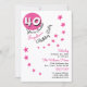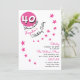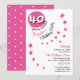 Invitación única de cumpleaños número 40 para estrella de 40 años. El color de acento es rosa y adornado con un número 40 moderno en círculo en blanco y negro. Edite las plantillas de evento para el cumpleaños especial.