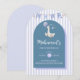 Celebra el hito de tu pequeño con esta adorable invitación de cumpleaños del ganso azul. Diseñada con tonos pastel suaves, rayas elegantes y un encantador ganso sosteniendo un globo, esta invitación es perfecta para un tema de cumpleaños dulce y moderno.