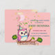 La invitación presenta un búho adorable y el juego de palabras '¿Quién está listo?', totalmente personalizable con nombre, fecha y información del lugar