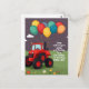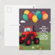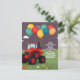 Invitación personalizada para fiesta de cumpleaños . Tarjetas de invitación y papelería Invitación de cumpleaños con un gran tractor rojo y globos. Ponga el nombre de sus hijos en la tarjeta con todos los detalles para que sus amigos se diviertan.