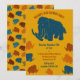 Dale a tu fiesta prehistórico un toque divertido con estas invitaciones de los personalizados. Presentan bonitos ilustraciones al estilo personalizado de mamut lúgubre en rojo oxidado, azul y naranja sobre un fondo de color dorado. Hay mucho espacio para incluir todos los detalles de su fiesta en letras en negrita. El lado inverso tiene un patrón de mamut lindos contra un fondo dorado. Estas invitaciones son perfectas para los niños interesados en la paleontología y los animales en edad de hielo o para los fiestas temáticos de los museos de historia natural.
