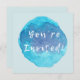 Hermosas tarjetas de invitación personalizado de acuarela con el mensaje "¡Estás invitado!" en ricos tonos azules, desde el cielo a la realeza y el bebe al turquesa. Estas invitaciones son perfectas para cualquier cosa, desde un cumpleaños, a una ducha de bebé, a un picnic, una cena de fiesta, etc. Completo personalizable en la parte de atrás del festín Ocasión especial, fecha, hora, ubicación y RSVP!