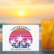 Agradable reunión familiar invitación a una reunión en la playa o a un crucero por la isla. Delante de una puesta de sol en la playa rosa de bonito hay bonitas palmeras. Una divertida invitación personalizado a su fiesta de verano en la costa.