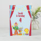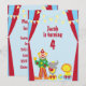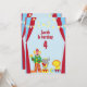 Celebra el cumpleaños de tu hijo con este lindo personalizado payaso circense con un león y elefante parados afuera de la carpa de circo. El texto se puede personalizar fácilmente para hacer el regalo personalizado perfecto o tarjeta para el cumpleaños de cualquier niño.