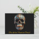Invite a sus huéspedes a una celebración Día de los Muertos vibrante y memorable con esta sorprendente postal. La parte delantera de la tarjeta presenta un cautivador diseño del cráneo 3D Day of the Dead, mostrando una base negra adornada con intrincados y coloridos patrones florales y de desplazamiento en oro metálico, verde azulado y cobre, que encarnan el espíritu festivo de la festividad. Debajo de este llamativo diseño hay un campo de texto de personalizable, perfecto para un mensaje corto y impactante como "¡Celebrar el Día de los Muertos!" o un simple "¡Te invitan!". La parte posterior de la tarjeta postal proporciona amplio espacio para un mensaje de invitación más largo. Puede personalizar este área con todos los detalles esenciales de su evento, como la fecha, hora, ubicación, información de RSVP y una breve descripción de lo que los huéspedes pueden esperar. Alentarlos a que se unan a ustedes para honrar a sus seres queridos, disfrutar de la comida tradicional y la música, y adoptar las ricas tradiciones culturales del Día de los Muertos. Esta postal combina un impresionante diseño de cráneo 3D con la practicidad del texto de personalizable en ambos lados, lo que hace que sea una manera única e informativa de invitar a tus amigos y familiares a tu celebración.