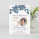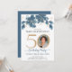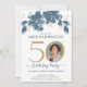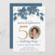 Invitación Personalizado floral azul dorado Foto 50 cumpleaño