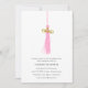 Tarjeta de plantilla moderna para la fiesta de graduación que incluye un ilustracion de un tassel rosa con un encanto de Relieve metalizado falso colgante de oro de la palabra "GRAD". Personalice con su texto en la parte delantera y añada la foto del graduado en la parte posterior de la tarjeta o elimine la foto y manténgala simple y moderna. Excelente tanto para graduados de secundaria como universitarios. Pintura original ©Marisu Valencia