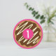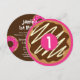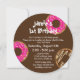 Invitaciones a la fiesta de cumpleaños de un niño personalizado. La fiesta temática de la comida dulce se invita al cumpleaños de los niños, a la ducha de bebé, a los 16 dulces, al evento, a la reunión, al fiesta de la cena, a la reunión, al calentamiento del hogar, etc. Plantilla de texto personalizada con color de fondo personalizado. Divertido diseño de donut dulce rosa y marrón con color de fondo y tipografía caprichosa. Personaliza para niño o chica. Círculos divertidos cortan el diseño de forma con ilustracion de comida colorido. Haz invitaciones circulares para el 1.º 3º 4º 5º 7º 8º 10º 11º 12º 13º B'day, etc. El personalizado no crece, invita a las tarjetas para su hijo, hija, nieto, recién nacido, amigos, familia, primo, sobrino, nieto, nieta, etc. También diversión para celebraciones de adultos. Impresión a dos caras.
