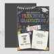 Esta invitación a la graduación preescolar es una elección perfecta. El diseño incluye fondo de pizarra, dibujos a tiza, embutidos, lápices, libros, gorro de graduación e íconos de carátulas sonrientes. Su diseño lúdico es perfecto para los preescolares. Crea un ambiente divertido para la graduación preescolar. Los nombres y los detalles del evento se pueden personalizar.