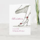 Este diseño es una reproducción de mi ilustracion original en pluma y tinta. Muestra un pie de mujer en tacón alto que está dando un gran paso para simbolizar que el boda mismo es un gran paso también. Esta tarjeta es una manera maravillosa de pedirle a alguien que sea su dama de honor y personalizar la tarjeta con su nombre.