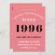 For those born in 1996 and celebrating their birthday party we have the ideal birthday invitation card. The pink background with a white and black design is simple and yet elegant. Easily customize the text to the front and the rear of this birthday invitation card using the template provided. Part of the setting standards range of cards, party supplies and gifts.