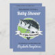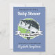 Una minimalista invitación a la ducha con abejorros de peces azules. ¡Es un pequeño pescador! ================================================================================================================================================================================================================================================================