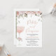 Petals Prosecco Rubor Floral QR Code Bridal Shower Invitation Pétalos de inspiración bohemia y prosecco invitación a la ducha de novias con una encantadora disposición floral y eucaliptos en la parte superior del diseño y un vaso de color rubor. Esta invitación a la ducha de novias también incluye unos pétalos de oro rosa falsos y el encabezado de la imagen de Prosecco, la foto de la novia y el código Qr en el reverso de la invitación.