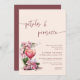 Elegante caligrafía "Petals & Prosecco bridal ducha color rosa floral y vidrio invitación.