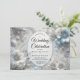 Celebra tu amor con la intemporal belleza del invierno en esta elegante invitación a la boda. Con delicados florales blancos y azules helados, hojas de plata brillantes, plumas suaves, copos de nieve y chispas sutiles, este diseño encantador evoca la magia de un maravilloso país con polvo de nieve. Perfecto para bodas de invierno, ceremonias de vacaciones o cualquier evento romántico en un entorno helado. El centro de gradiente suave ofrece un amplio espacio para la redacción personalizado, mientras que el borde ornamentado crea un marco lujoso. Una elección impresionante para las parejas que sueñan con un cuento de hadas de invierno.