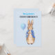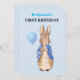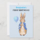 Peter la tarjeta de invitación del primer cumpleaños de Conejo.